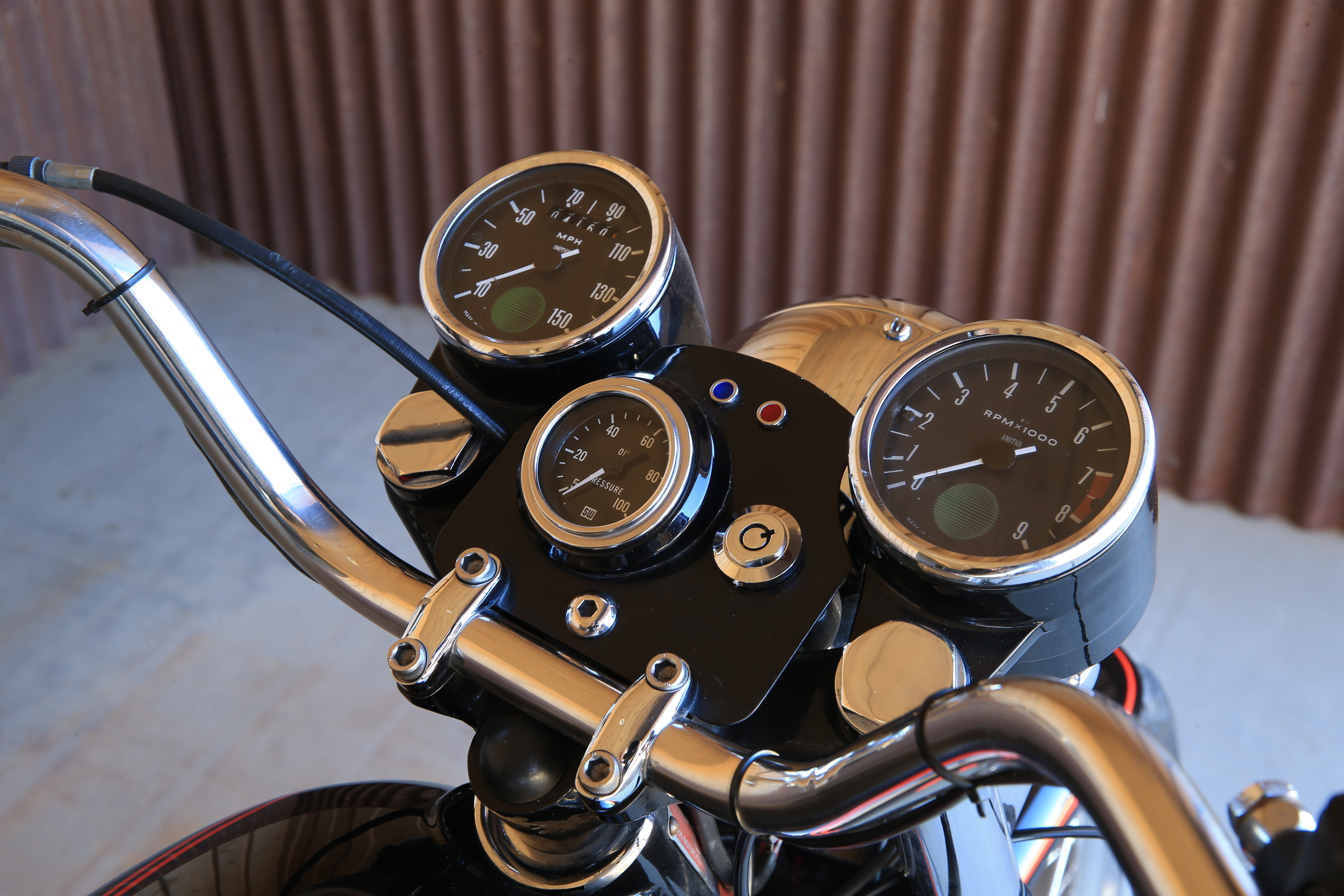 - Brief description: This late model cNw is a stunning bike. With the large and rare Interstate tank and traditional Black and Gold paint work, it just really makes a statement. Picky collector owned and very low miles. Barely broken in and ready to go. Since it’s a 1975 Mk3, you get an e-start system (cNw upgraded of course), left side shift and a front and rear disc set up. The cNw Brembo’s offer the best brake performance in the business. The custom made Corbin seat gives the bike a very aggressive and sporty look. Shouldered Excel show polished rims add to the vintage look and feel. The bike has optional Electronic instruments by Smiths and the front end has the Landsdowne adjustable internal fork assemblies that greatly improve compression and rebound. Small but bright cNw LED turn signals was another option used on the build. Dual, Chrome, Bar end mirrors. Single Mikuni carburetor for great performance and extremely user friendly operation.