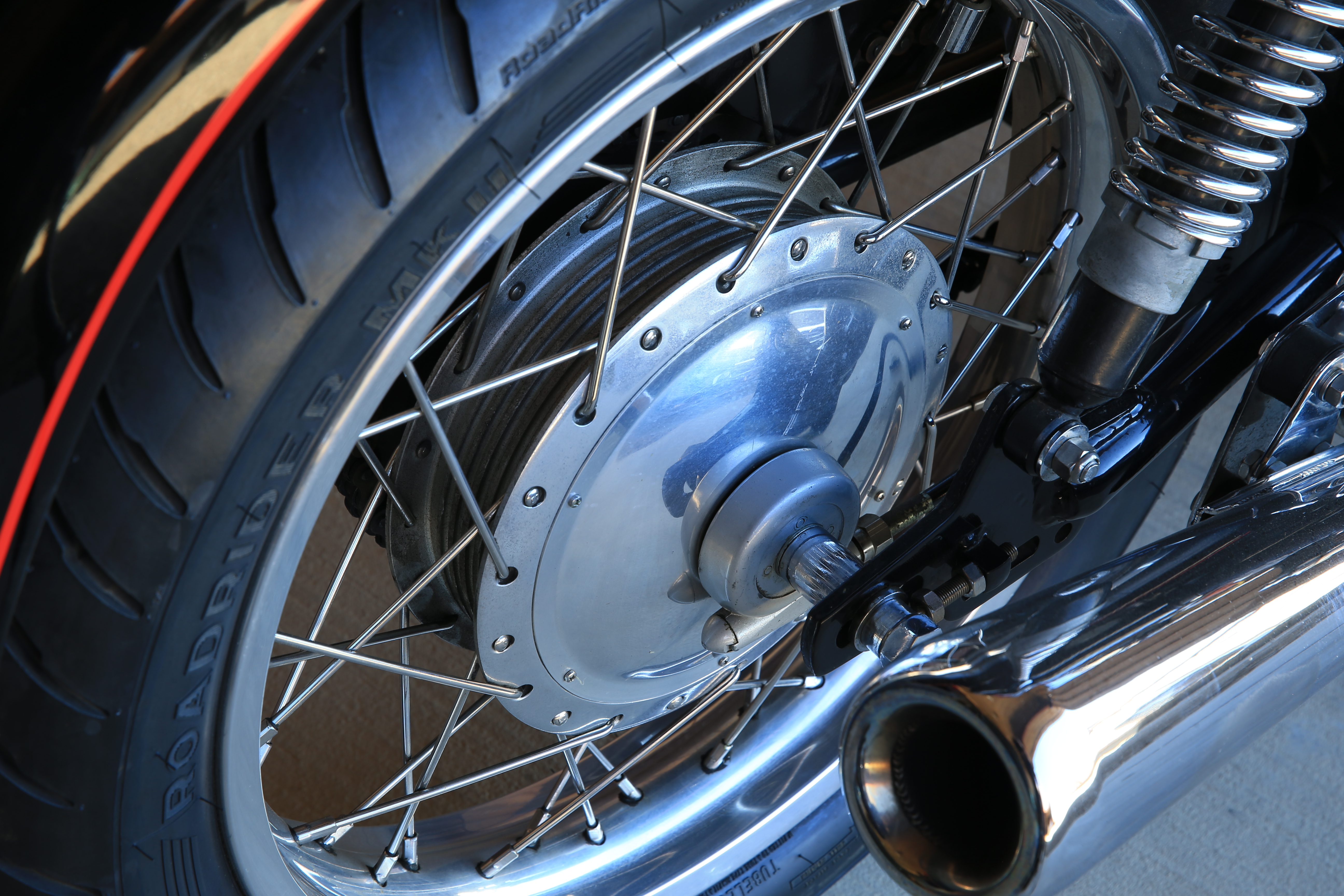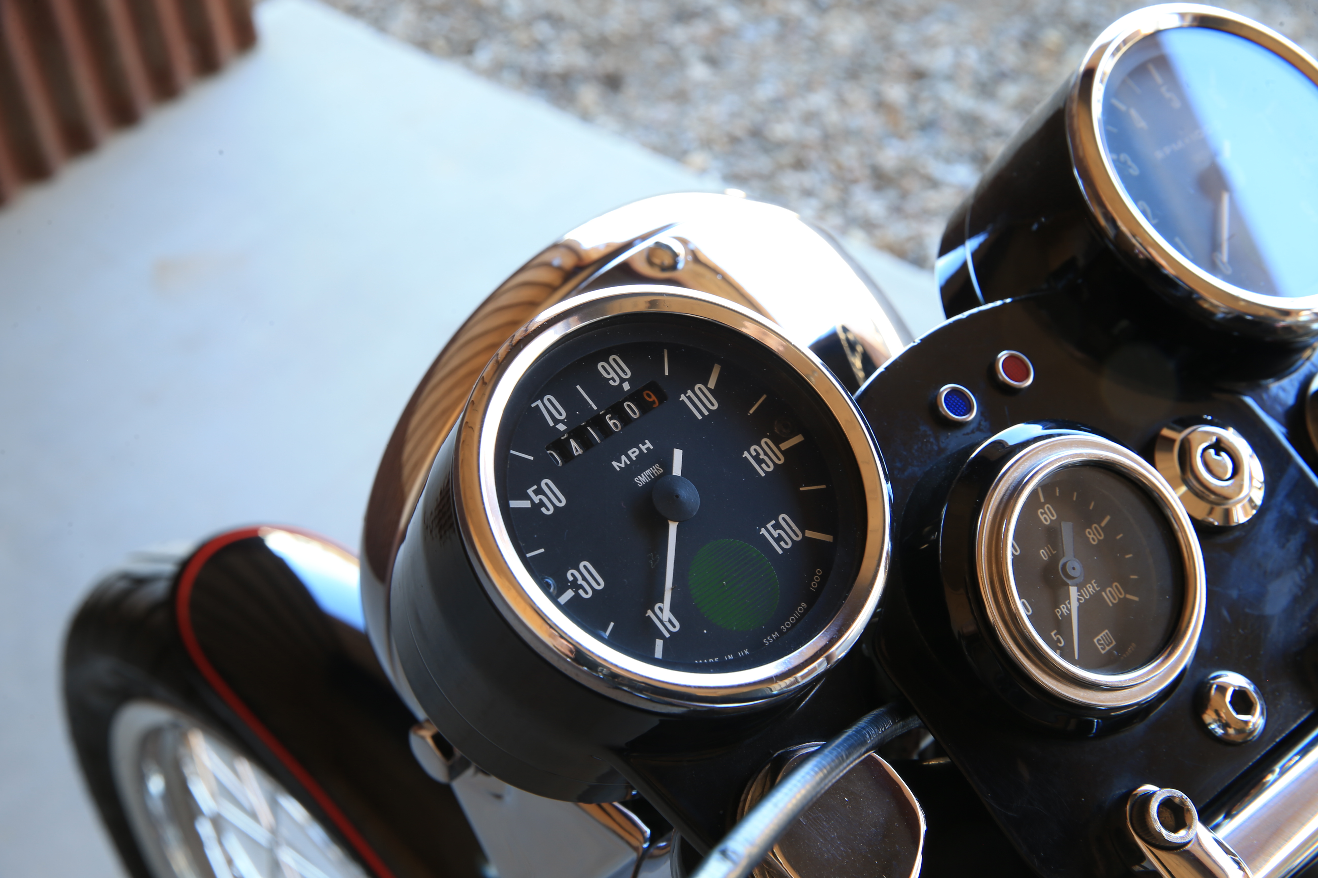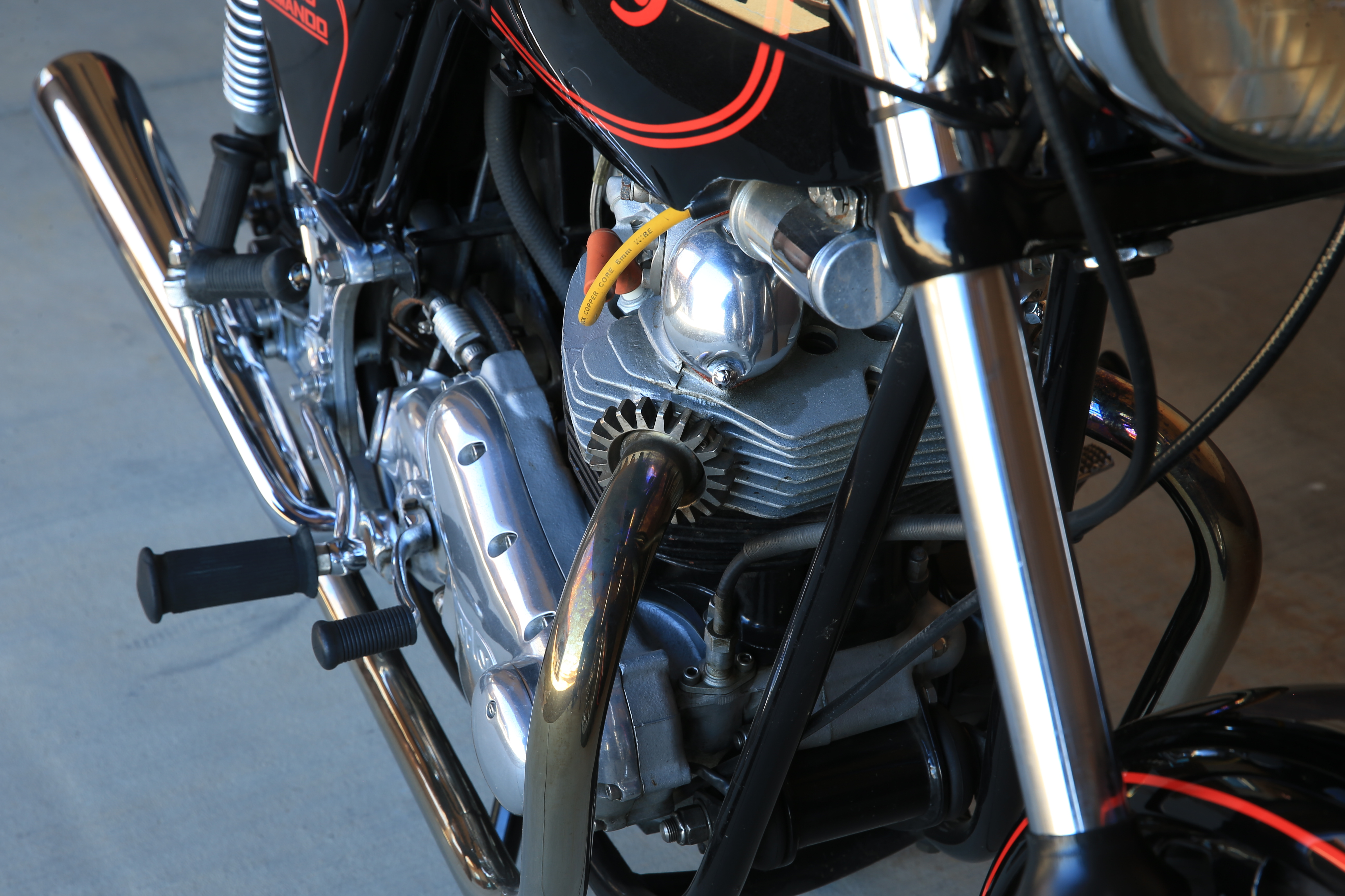 - Brief description: Very clean and well taken care of machine. Few miles and properly stored. The build is a bit unique as it has a right hand shift (unlike all factory MkIII’s). It also has an earlier model rear drum brake. Bike doesn’t really have any options as most of used to be extras on earlier builds because std equipment starting with bike # 050. So things like chrome front and rear end, belt drive, Brembo brake etc, was included in the build