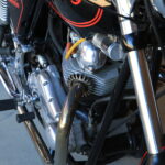 - Brief description: Nice looking older machine with few miles. When it came to the shop earlier in the year, it had a dent in the tank. I decided to repaint it (tank only) and that was just completed in March of 2015. So the paint condition of the tank is as current model builds. The color is ‘Viper red’. The bike had some options when built like front Brembo brake, Chrome package, Belt drive and a 1″ lowering kit